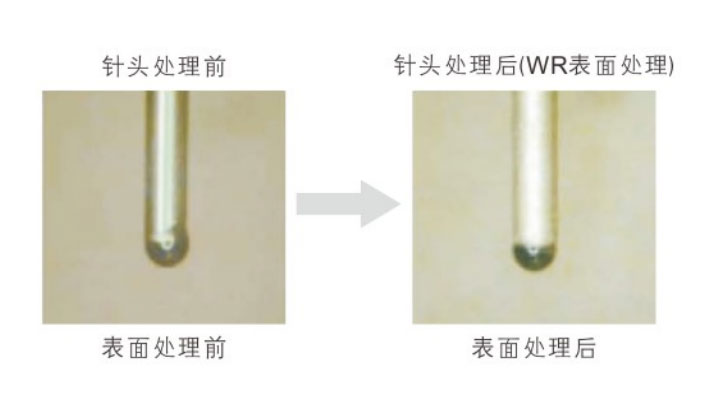 精準(zhǔn)點(diǎn)膠的秘訣在于抑制出膠量不均,材料拉絲,前 端爬膠等現(xiàn)象,進(jìn)一步實(shí)現(xiàn)高品質(zhì)的點(diǎn)膠。 在點(diǎn)膠針頭前端及內(nèi)徑進(jìn)行特殊材料的表面處理,可 以實(shí)現(xiàn)更精準(zhǔn)的點(diǎn)膠。請(qǐng)依照使用目的與用途來選擇 表面處理的種類。