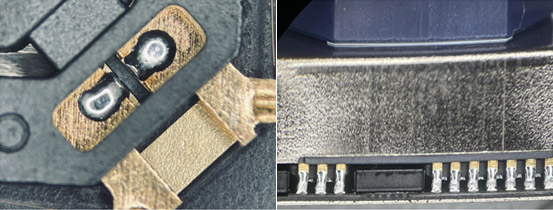 錫球通過導向通道到達噴嘴端部,發(fā)射激光融化, 加壓噴射到焊盤上,完成焊接。