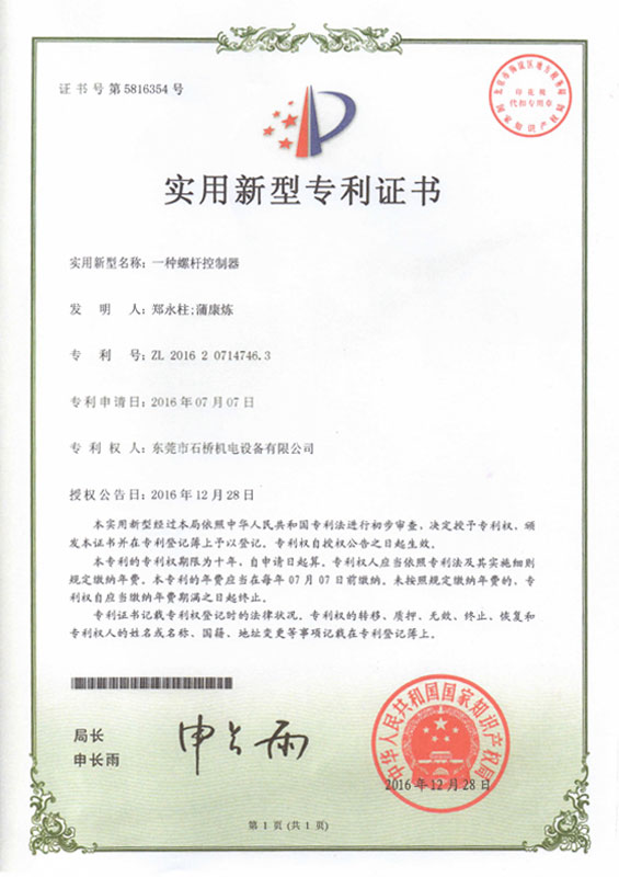 實(shí)用新型專(zhuān)利證書(shū) -